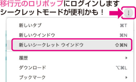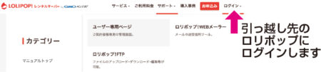 新規の移行先 ロリポップへログイン