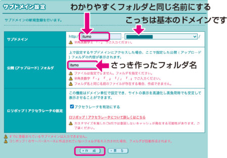 サブドメインもフォルダと同じ名前がわかりやすいです。