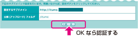設定するサブドメインとフォルダがOKなら認証をクリック。