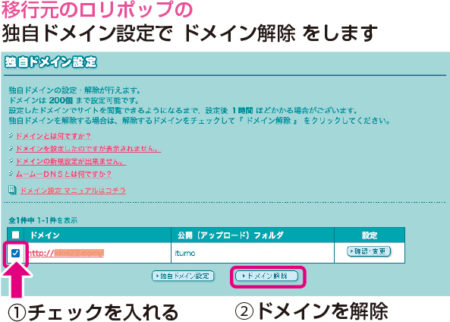 移行元(いなくなるロリポップ)にログインしてドメイン解除