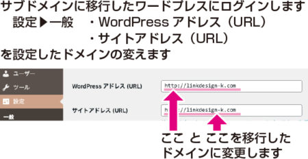 サブドメインになっているホームページアドレスを、設定し直したドメインに変更します。