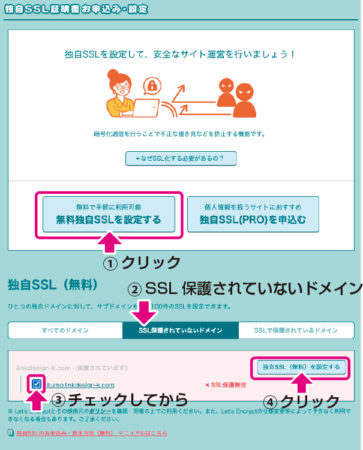 独自SSL(無料)を設定する をクリック